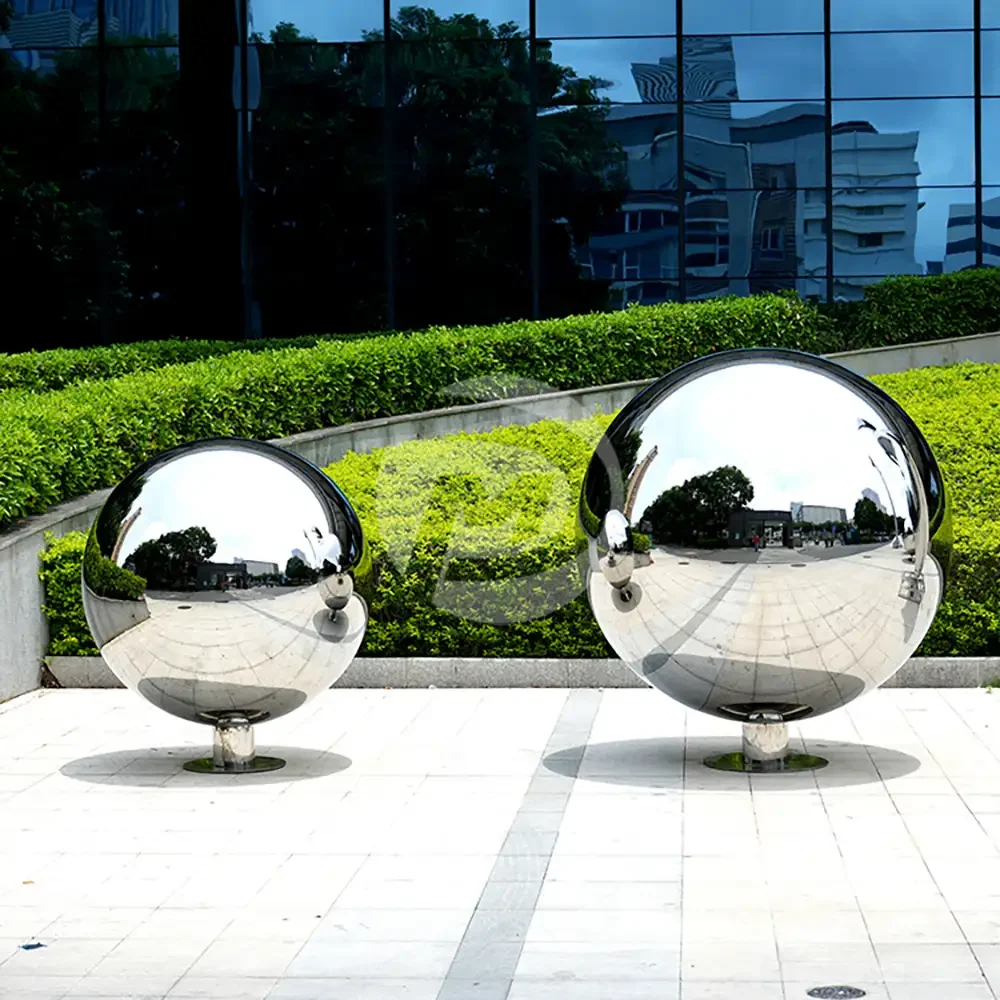 Large Stainless Steel Garden Spheres is forming with durable AISI304 stainless steel sheet by water presure. Our technicians calculate the specific data for the welding steel sheet size ,then bending it to a precise shape, next our qualify workers weld a similar spherical cube shape and forming a perfect spherical steel balls with particular water pressure. Finally we’ll grind off the welding seams and mirror polishing it.There’s no standard die limited under this method. Making any size on your demand.