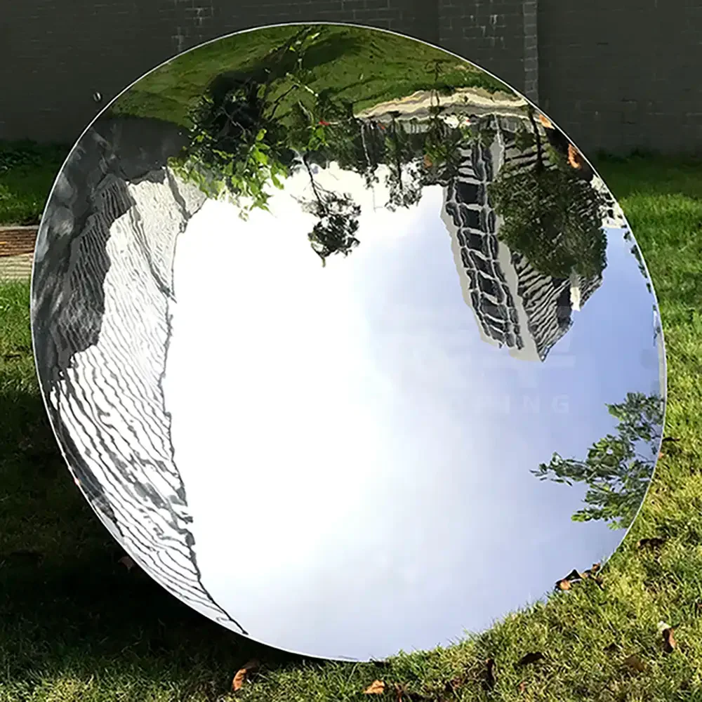 High-gloss mirror stainless steel spheres reflect surroundings, showcasing a distinctive artistic effect and modern aesthetic.