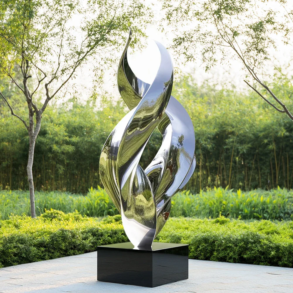 This Custom Modern Stainless Steel Outdoor Abstract Spiral Sculpture is a stunning visual representation of dynamic motion and transformation. This stainless steel sculpture twisting, flowing form is designed to capture energy and movement, while the polished mirror finish reflects the surrounding environment, creating an ever-changing visual experience. Ideal for outdoor settings such as gardens, corporate parks, or luxury estates, this abstract sculpture acts as both a modern art piece and a statement focal point. Its sleek, minimalistic design brings sophistication and elegance to any space, elevating the overall ambiance with a sense of fluidity and grace.
