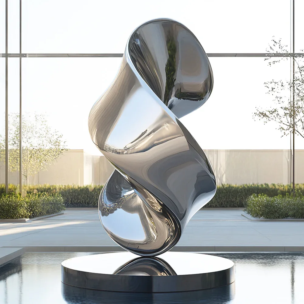 The Custom Size Stainless Steel Abstract Sculpture is a striking representation of symmetry and distortion, combining dynamic motion with artistic precision. Its twisting form, with smooth and continuous curves, creates a mesmerizing effect that captures the essence of both infinity and transformation. The design is defined by a sense of balance, where the sculpture’s twisting shape loops back on itself in a perfect symmetry, symbolizing the delicate relationship between chaos and harmony.