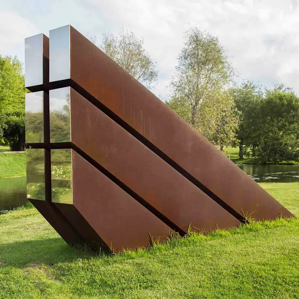 Weathering steel offers excellent resistance to atmospheric conditions, making this sculpture ideal for permanent outdoor installation. It withstands rain, wind, temperature changes, and sunlight with minimal maintenance.