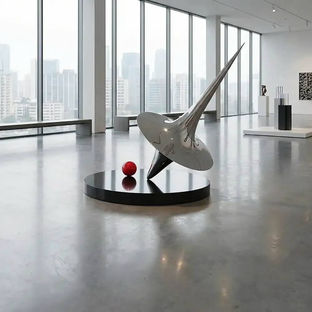 The sculptural composition combines smooth flowing geometry with a striking red accent sphere, adding contrast and artistic tension to the design. Engineered for durability and weather resistance, it is suitable for plazas, commercial complexes, gardens, hotel entrances, and corporate landscapes. Custom sizes, finishes, and installation solutions are available to meet project requirements.